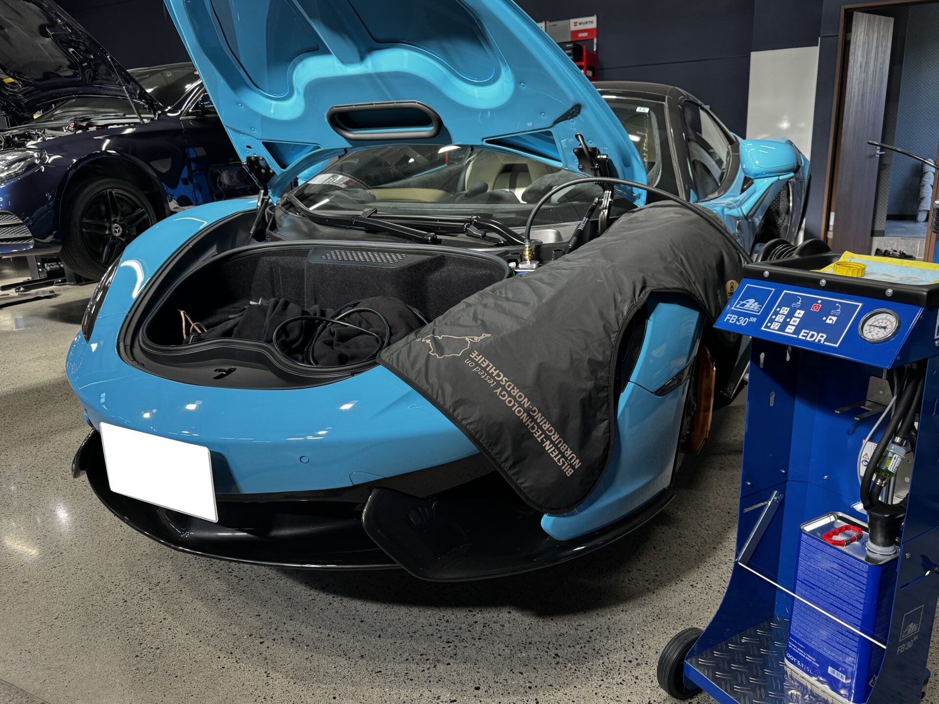 マクラーレンのOBDは独自のプロトコルを持っていますが、専用テスターにてコンピュータ診断へ。メンテナンスリセット施工し、診断結果においては問題無し。